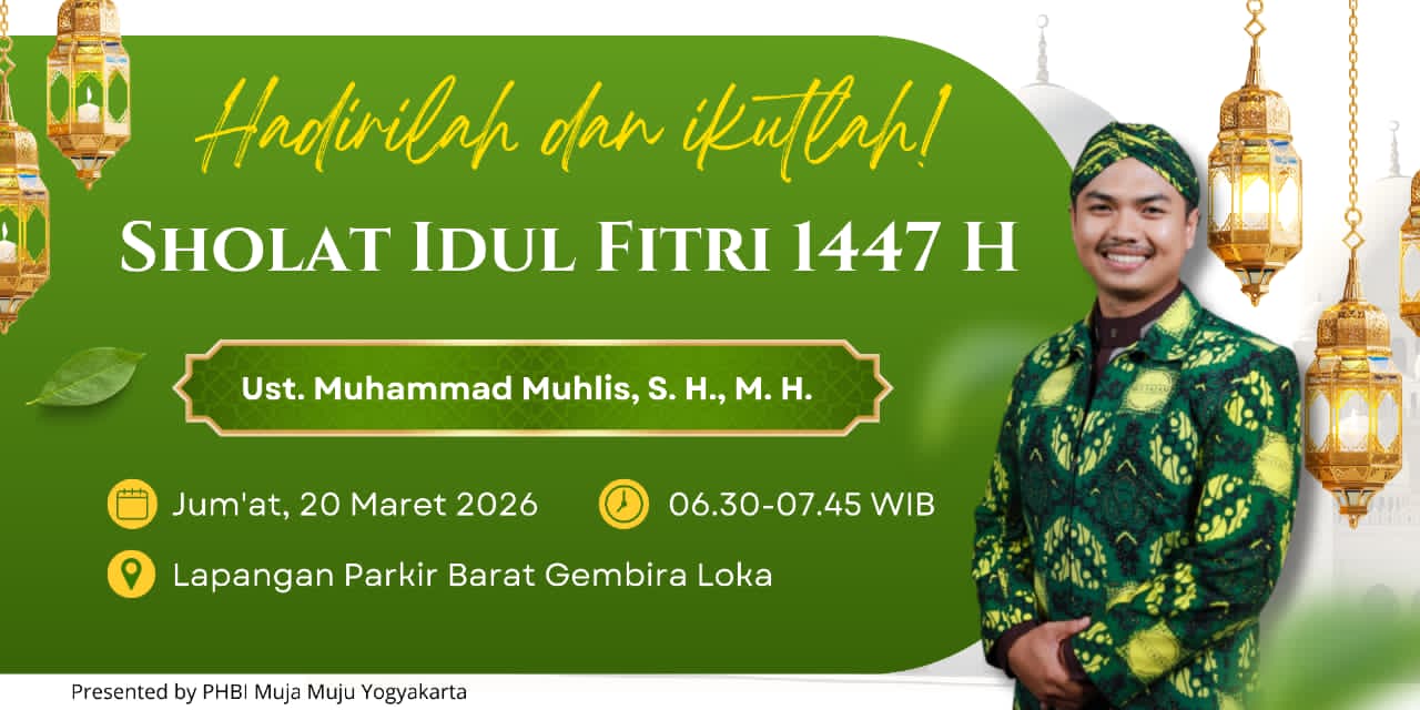 Disampaikan pada rangkaian ibadah Salat dan Khotbah Idulfitri 1447 H/2026 M di Lapangan Parkir Barat Gembira Loka, presented by PHBI Muja Muju Yogyakarta; Jumat, 20 Maret 2026; pukul 06.30-07.45 WIB.